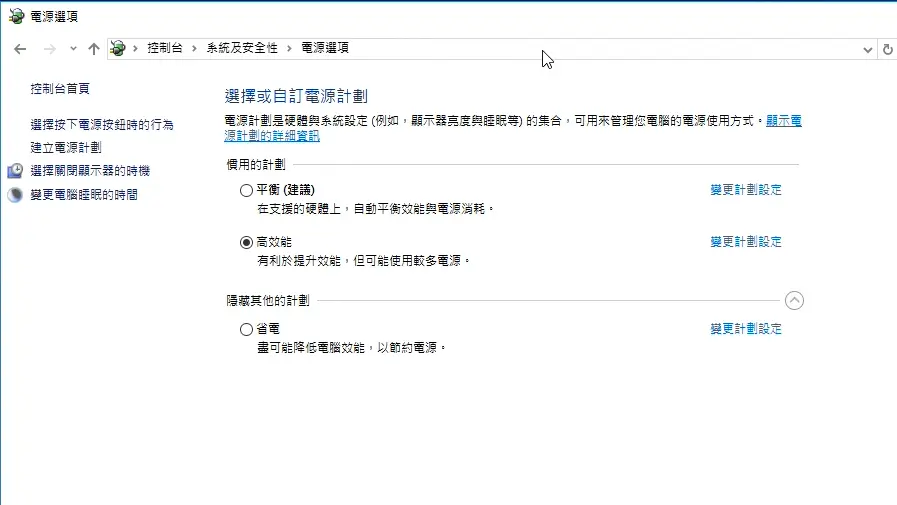Windows 10 預設會用休眠做「快速開機」,但是這會變成關機的時候還要等記憶體資料寫回 SSD ,消耗 SSD 寫入壽命外也讓關機變得更慢,所以一律關閉。 - 電源選項設定成高效能