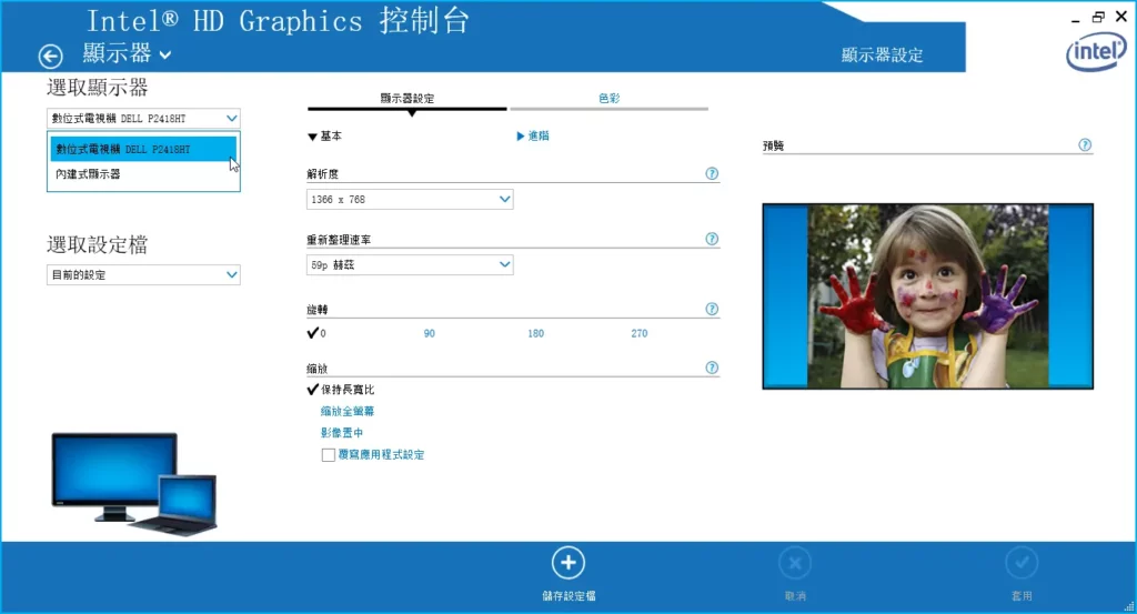 Windows 作業系統上透過 Intel HD Graphic 控制台、 NVIDIA 控制台可以看到 EDID 當中的螢幕型號。