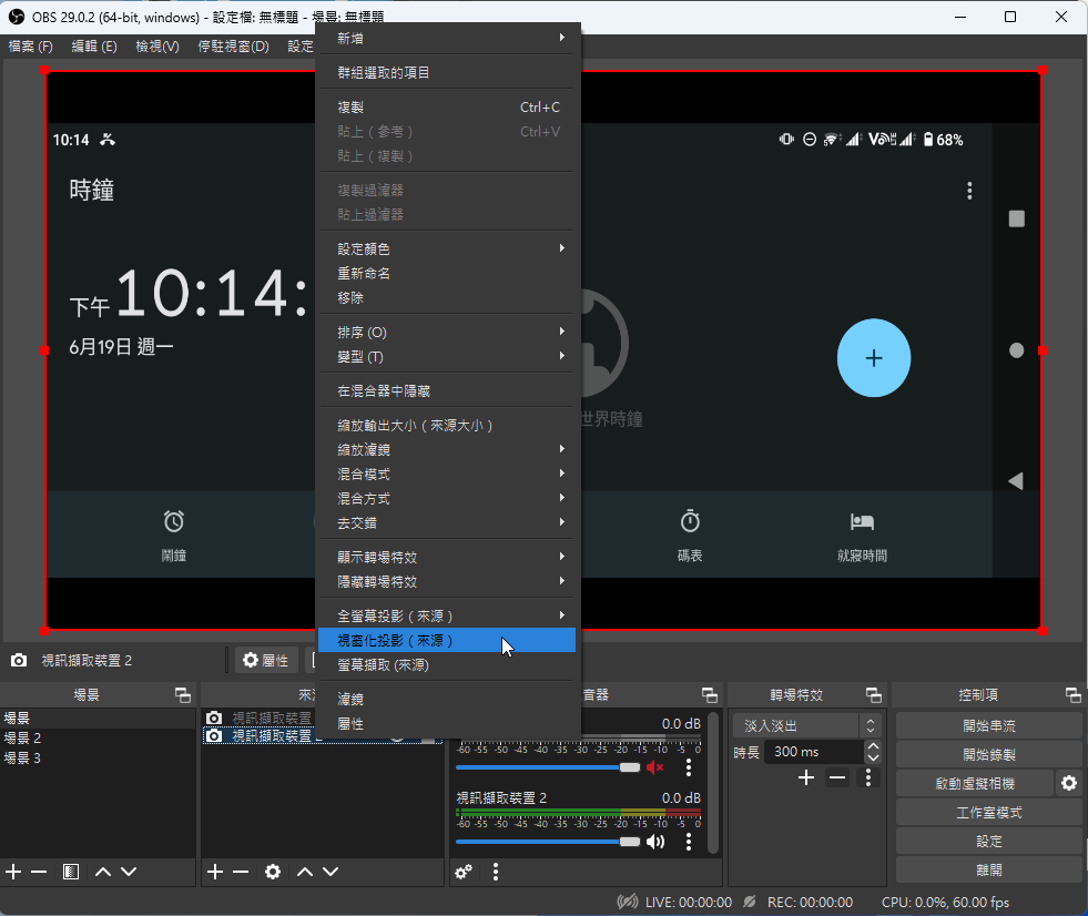 這個其實是使用了OBS 建立預覽訊號來源視窗的功能,只要在 OBS 的「來源列表」中的「來源」上按下右鍵,選擇「視窗化投影」或「全螢幕投影」。