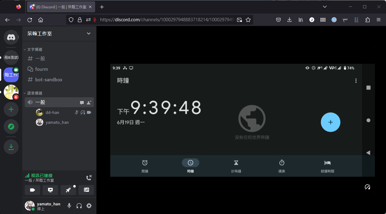 仔細看一下播報席畫面上各個選手的子畫面,右上角都有個紅色「ライブ」字樣(意為英文的”Live”),和一般直播下的 Discord 畫面進行比較可以得知,其實在開啟攝影機畫面時並不會有這個紅色Live字樣顯示,而是使用分享螢幕的功能時才會有出現。